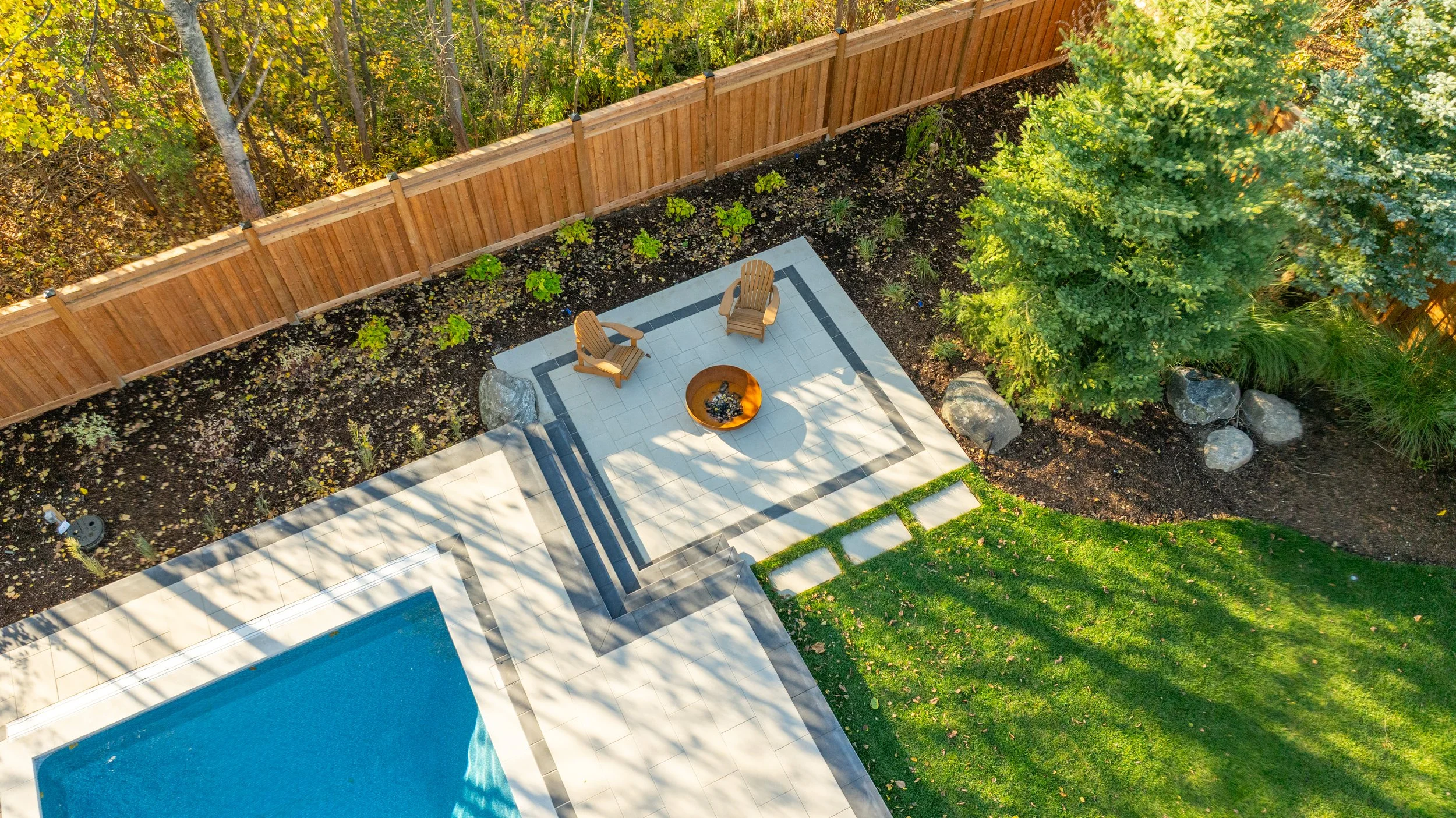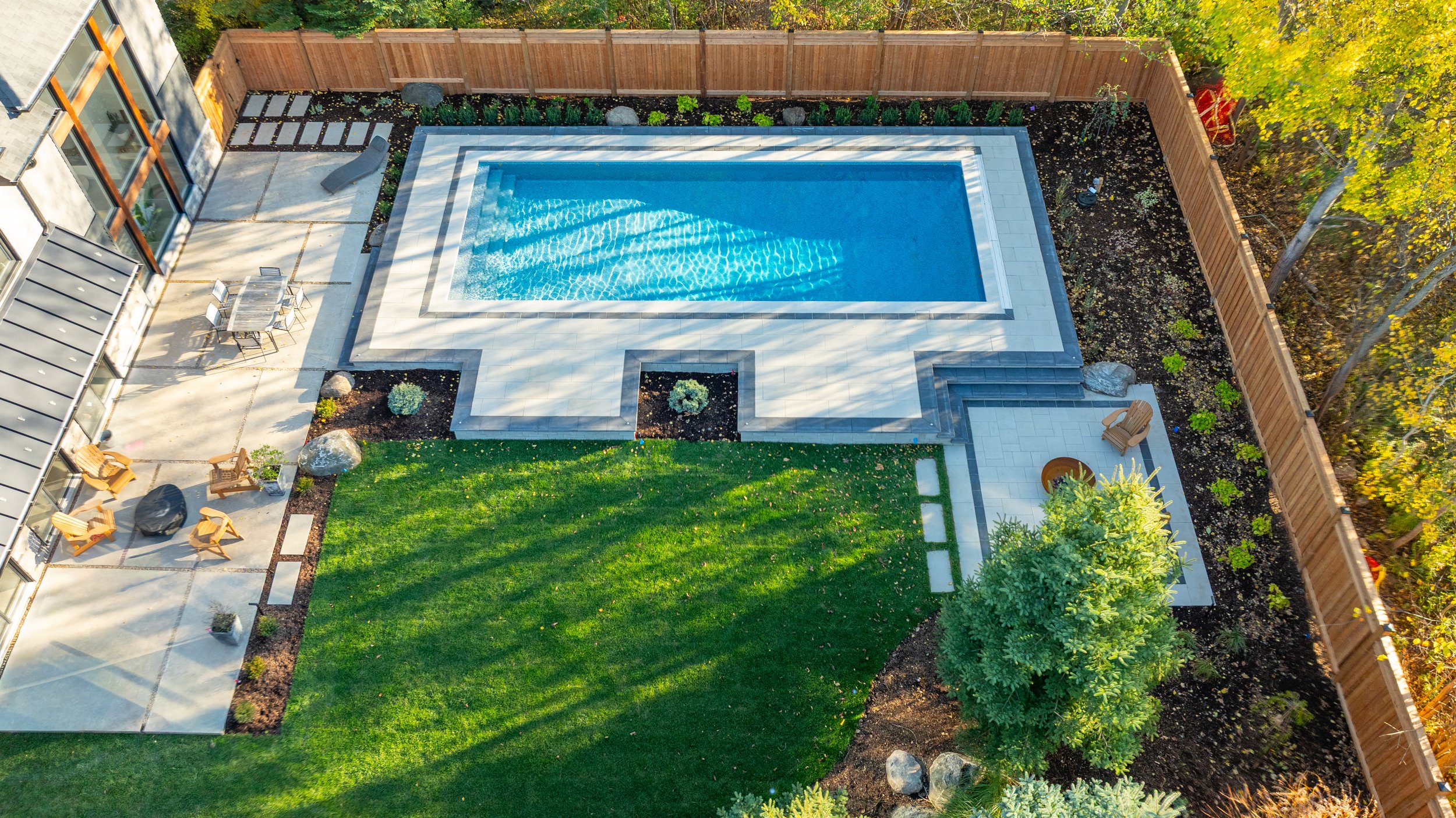 Seamless integration between pool, patio, and lawn